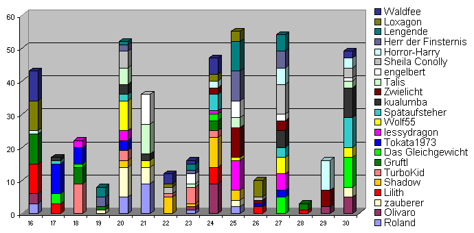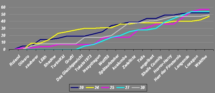 Bitte gebt wieder eure 5 Favoriten an, wobei Platz 1 die meisten Punkte und Platz 5 die wenigsten Punkte bekommt (Nach dem System 9-5-3-2-1).