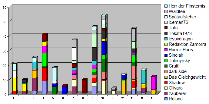 Bitte gebt wieder eure 5 Favoriten an, wobei Platz 1 die meisten Punkte und Platz 5 die wenigsten Punkte bekommt (Nach dem System 9-5-3-2-1).