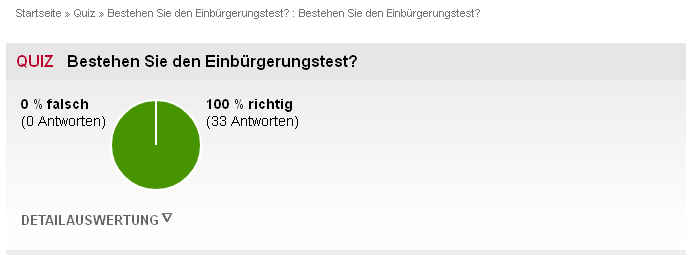 Bei dem Test habe ich 3 Fragen falsch beantwortet. Immerhin noch 91% richtig großes Grinsen