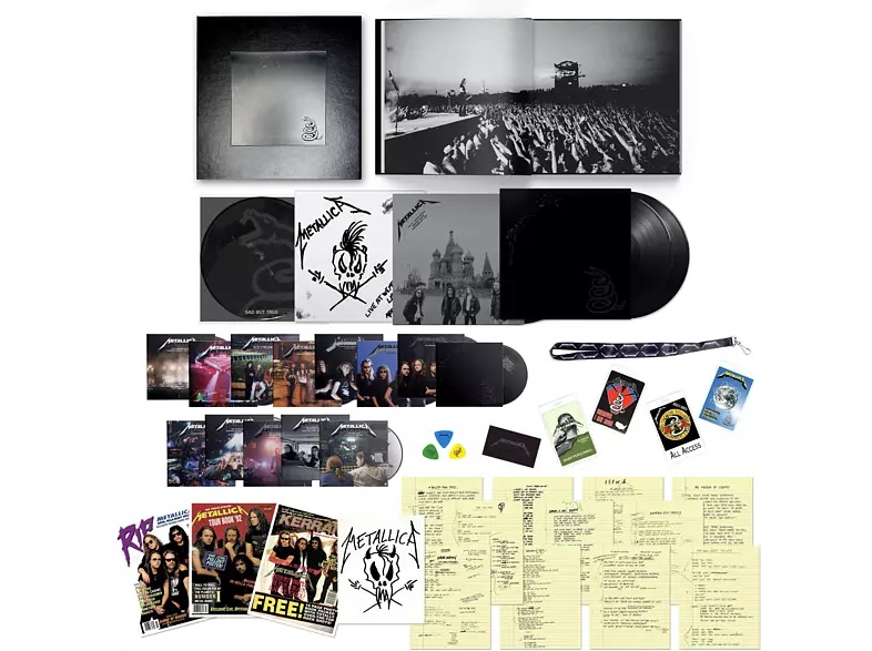 Um das 30. Jubiläum dieses ikonischen, mit einem GRAMMY und gleich 16x US-Platin (4x DE-Platin) ausgezeichneten Meilensteins zu feiern, erscheint nun die definitive Remaster-Neuauflage von The Black Album. Veröffentlicht wird es u.a. als 2LP (180g), Standard- und 3CD-Expanded Edition, digital sowie als Limited Edition Deluxe Box-Set. Letzteres vereint die 2LP, eine Picture-Disc, 3 Live-LPs, 14 CDs (mit allen Rough-Mixes, Demos, Interviews, Livemitschnitten etc.), 6 DVDs (Outtakes, BTS-Material, offizielle Videos, Livematerial), ein 120-seitiges Hardcover-Buch, vier laminierte Tour-Ausweise, drei Lithografien, drei Plektren, ein Metallica-Schlüsselband, ein Folder mit Textbögen sowie eine Download-Karte.