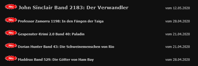 Gibt es eigentlich noch die Romanheftcharts aller John-Sinclair-Romane? Die standen früher bei denen der 1500er bis heute als Extra-Link, aber der ist schon einige Zeit verschwunden.