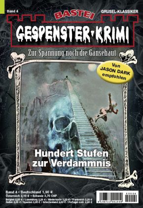 Als Band 4 erscheint ein weiterer Roman von Richard Wunderer ("Hundert Stufen zur Verdammnis", GK 150), das Titelbild stammt wiederum von Rudolf Sieber-Lonati und wurde erstmals für den SGK 303 ("Die Treppe ins Jenseits") verwendet. Leider wurden die Farben auf dem neuen Heft bearbeitet und das Motiv verkleinert und nehmen so dem Bild viel von seiner Wirkung. Auch der wuchtige Rahmen, das Fehlen des Rollstuhls sowie die gelbe "Leseempfehlung" von Jason Dark und der Titel mitten im Bild mindern den Eindruck.