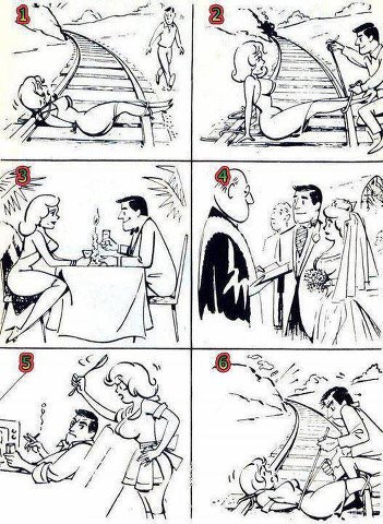 “Richtig so”, denkt die Blondine. “Der hat bestimmt versucht, mir an die Wäsche zu gehen, hat die Nonne erwischt, und die hat direkt zugelangt.”