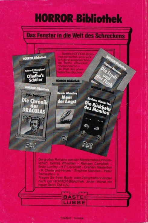 Die neue Taschenbuchreihe mit unglaublichen Romanen aus England, Frankreich und Amerika (Verlagswerbung) wurde nach 24 Bänden eingestellt; tatsächlich ist aber nicht ein Werk aus Frankreich erschienen. Ein weiterer Band, der Roman Das Haus der Bestie von Graham Masterton, war zwar noch eingeplant und übersetzt, erschien jedoch nach der Einstellung der Horror-Bibliothek verteilt über die ersten Bände der Zweitauflage von John Sinclair.; danach sollten noch die Bände