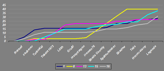 Bitte gebt wieder eure 5 Favoriten an, wobei Platz 1 die meisten Punkte und Platz 5 die wenigsten Punkte bekommt (Nach dem System 9-5-3-2-1).