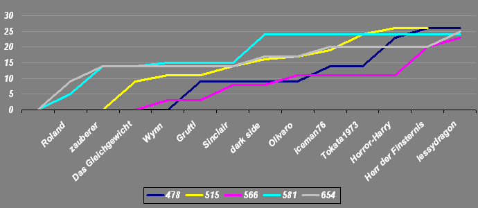 Bitte gebt wieder eure 5 Favoriten an, wobei Platz 1 die meisten Punkte und Platz 5 die wenigsten Punkte bekommt (Nach dem System 9-5-3-2-1).