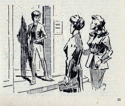 Der Zeichner Theo Thomas hat für den Fledermaus-Roman 400 auf den Seiten 9, 23, 38 und 51 vier Innenillustrationen gezeichnet. Dies ist eine davon.