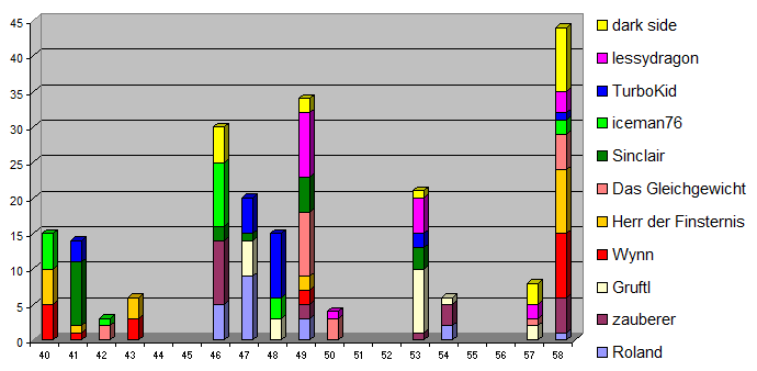 Bitte gebt wieder eure 5 Favoriten an, wobei Platz 1 die meisten Punkte und Platz 5 die wenigsten Punkte bekommt (Nach dem System 9-5-3-2-1).